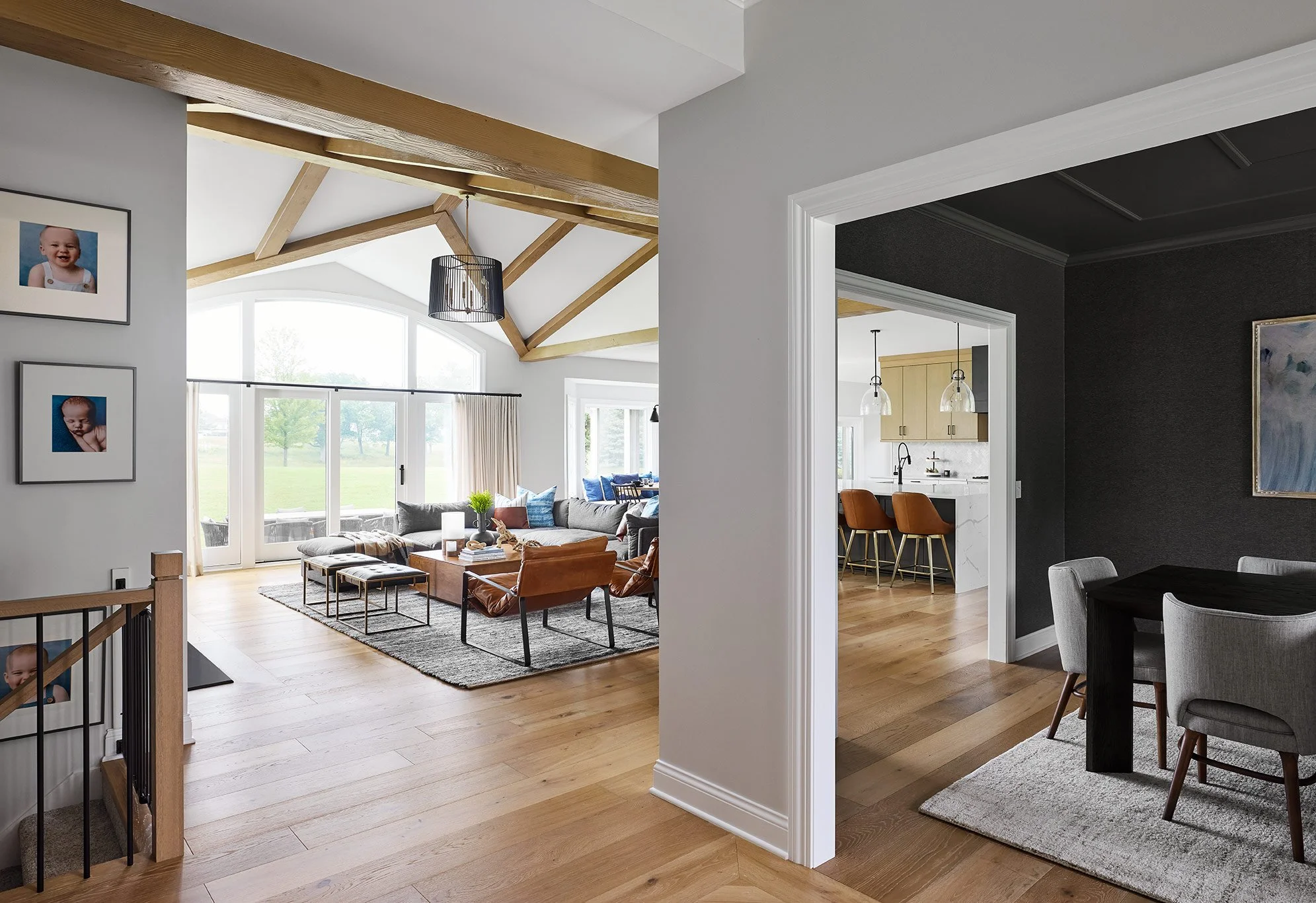 Create a core palette (wood tones, metal, colors) and then every time you pick something, check if it relates back to that core palette. Even patterns count, like organic natural textures or strong linear language. Keep referencing that core palette and sure enough, all the spaces will relate. Don’t be afraid to add some contrast on some areas… they don’t all have to feel identical, but they need to relate. For example, if you have subtle blue pops in some areas, consider painting one room a bold, dark blue to make it moody.