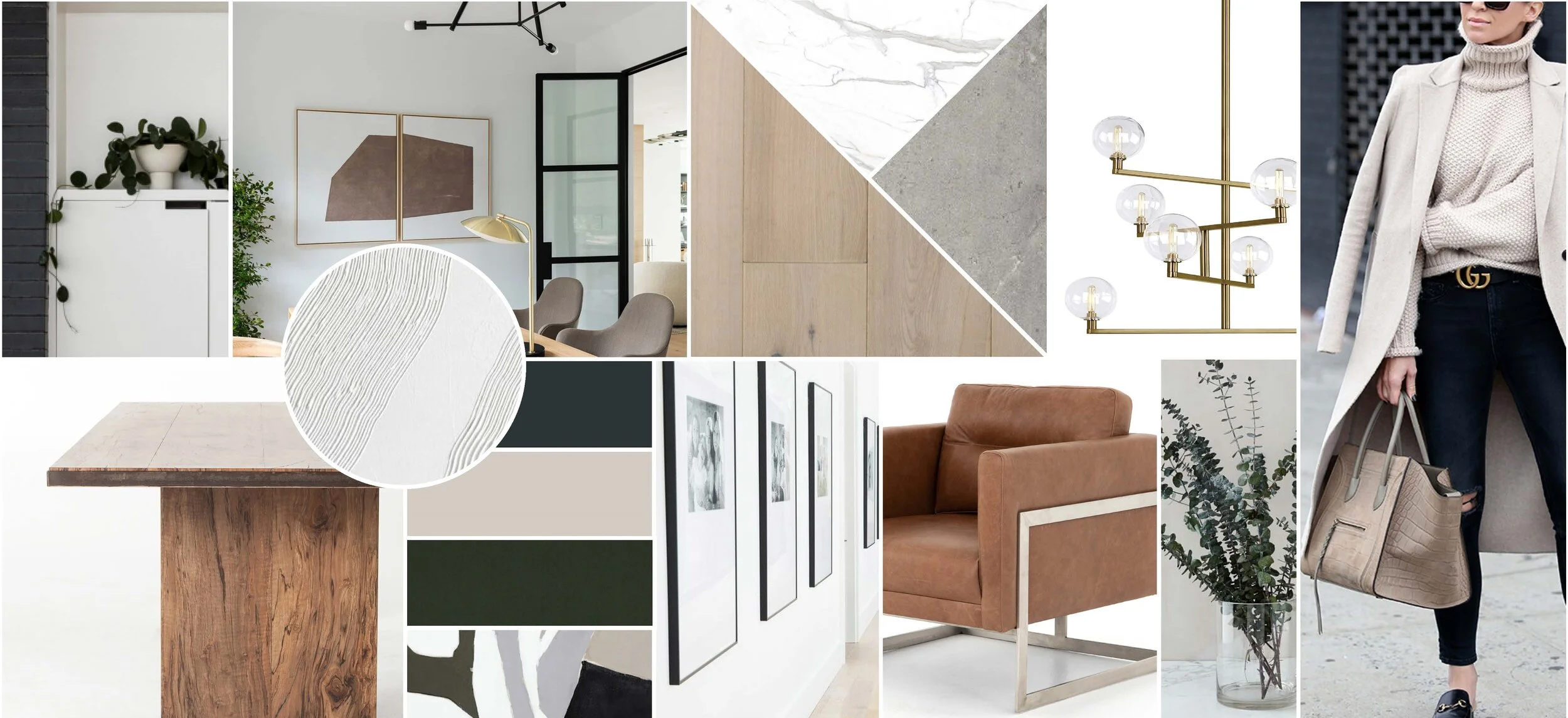The moodboard captures the crisp, modern lines that we incorporated into the project, balanced with warm, earthy tones and sculptural light fixtures. The home is open and spacious, so it was important to make each space special, while also keeping everything cohesive and unified.