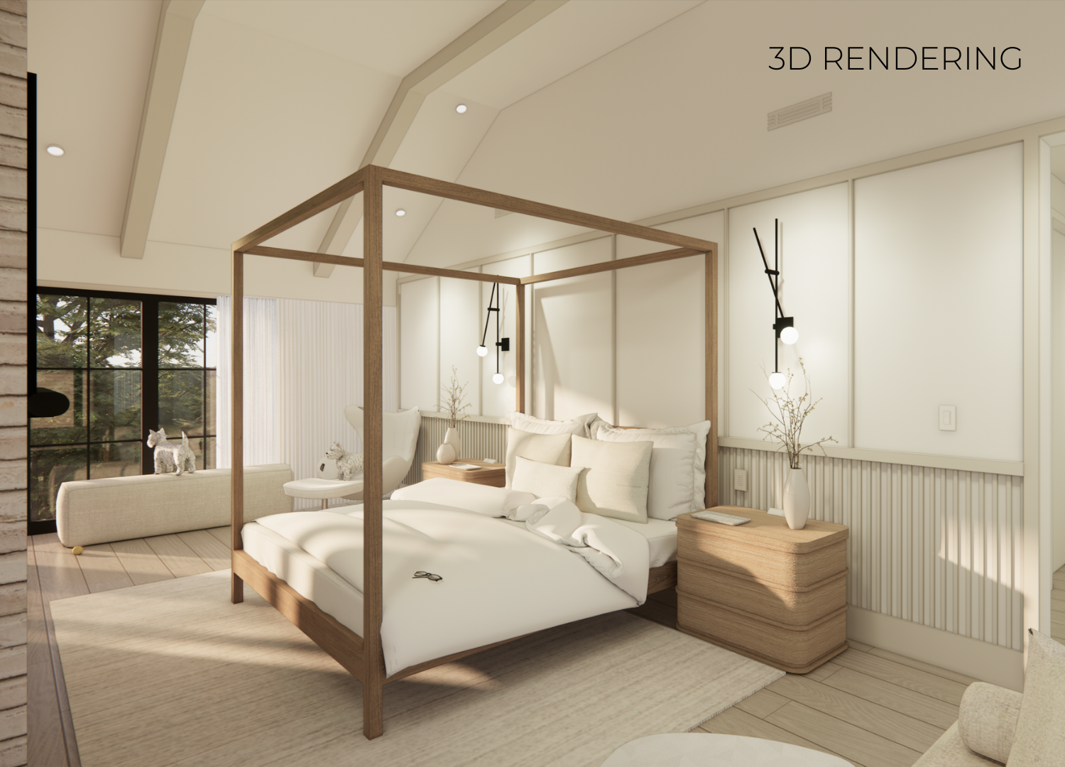There were a few areas where the clients struggled to make final design decisions - mainly the primary bedroom and the kitchen. As we worked through different iterations, one of our designers, Brittany, inserted Westies into the renderings (the family has two Westies) and the personal touch instantly made the client laugh and fall in love with the design. Sometimes it’s hard to visualize a space as your own until you see a personal touch or something familiar inserted into it.